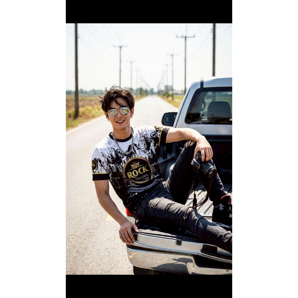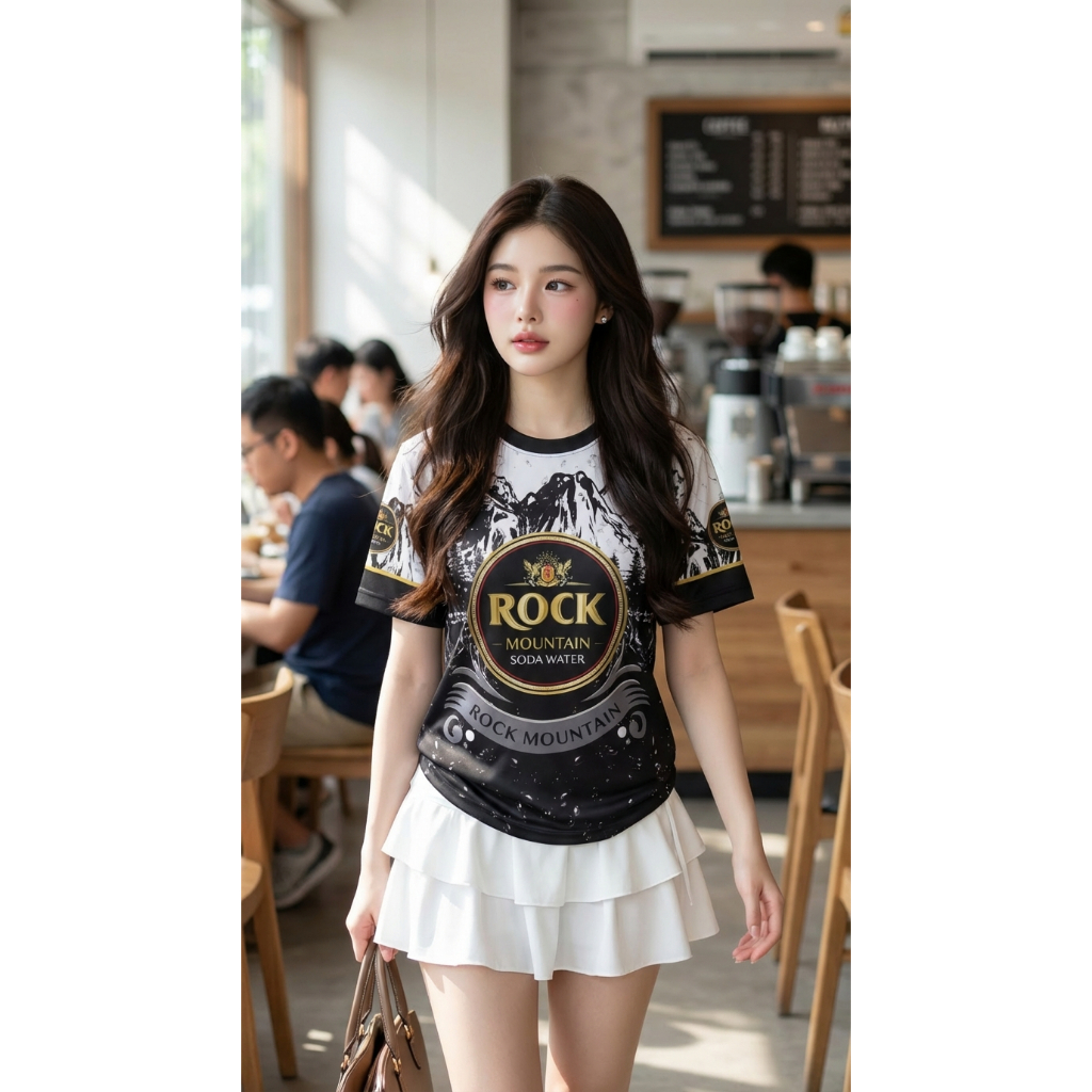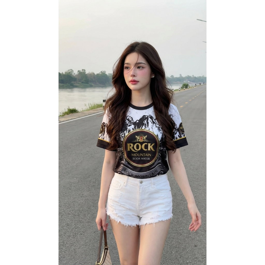 เสื้อคอกลมลายโซดาล็อกใส่สบายระบายอากาศผ้าไมโคร
