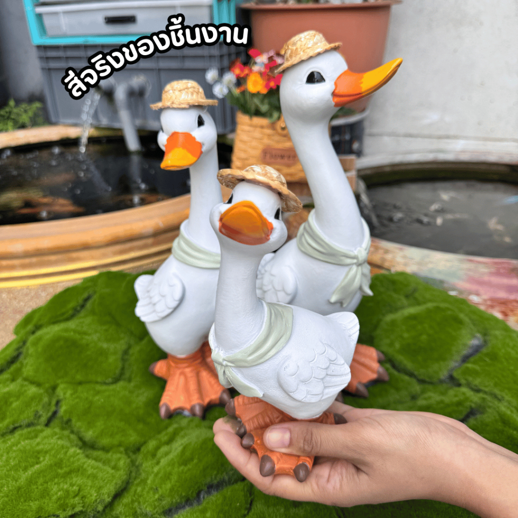 แก๊งเป็ดหมวกฟาง วัสดุเรซิ่น ทนแดด-น้ำ-ลม-ฝน ตกแต่งบ้าน แต่งสวน ตั้งโชว์ ของขวัญถูกใจ
