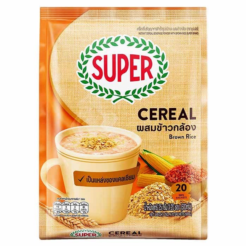 ซุปเปอร์ ซีเรียล บราวน์ไรซ์ ผสมข้าวกล้อง ขนาด 25 กรัม x 20 ซอง SUPER CEREAL BROWN RICE 25 G X 20 S