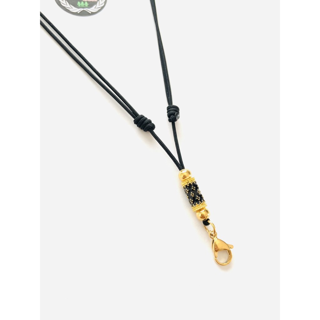 สร้อยพระเชือกร่ม1.2มิล ทองไมครอนลงยา"แท่งดำ-ทอง"พร้อมก้ามปูทองเลเซอร์ ปรับสั้นยาวได้ 16-30นิ้ว