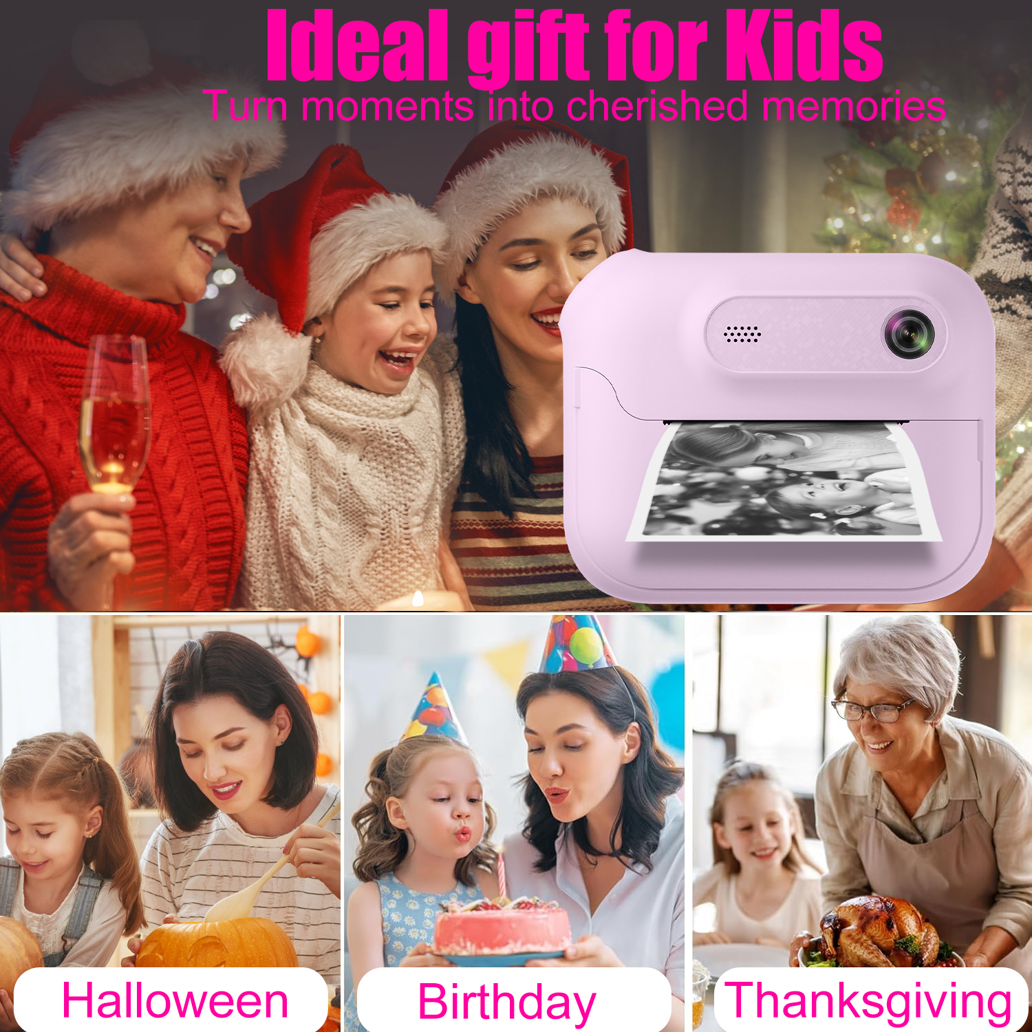 กล้องทันทีแบบพกพา 1080พี หน้าจอ 2.4 นิ้วเด็กพ็อกเก็ตของเล่นของขวัญ
