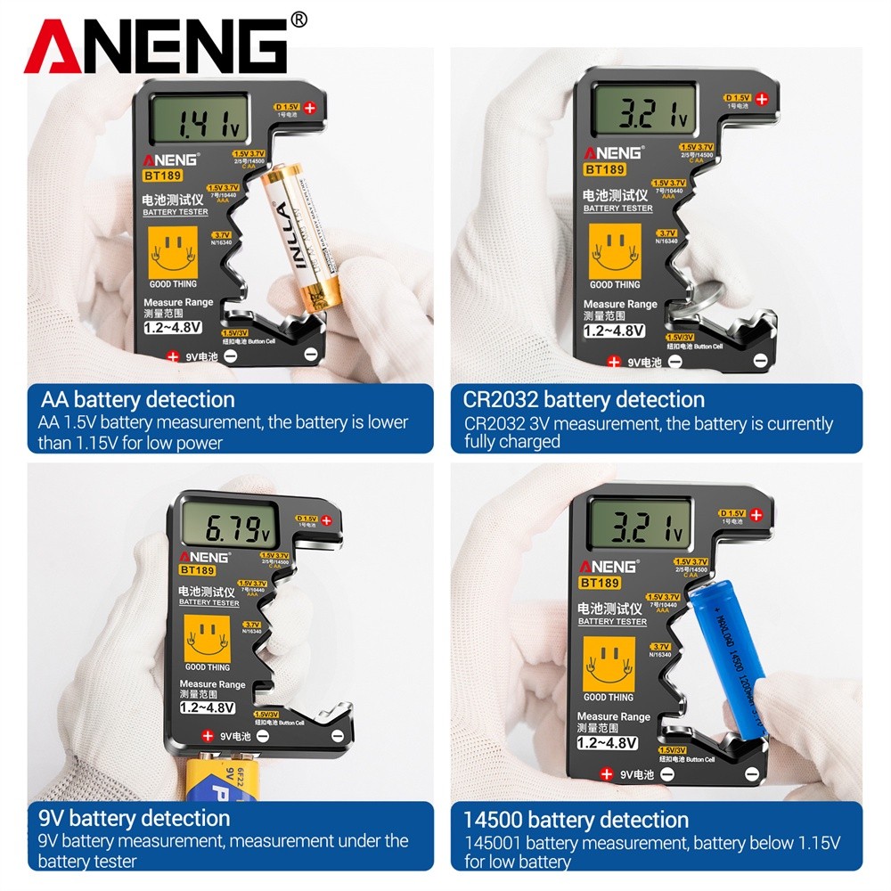Aneng BT189 เครื่องทดสอบแบตเตอรี่ 9V N D C AA AAA หน้าจอ LCD สําหรับครัวเรือน