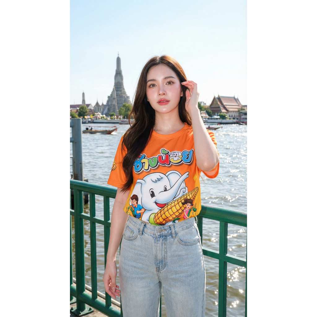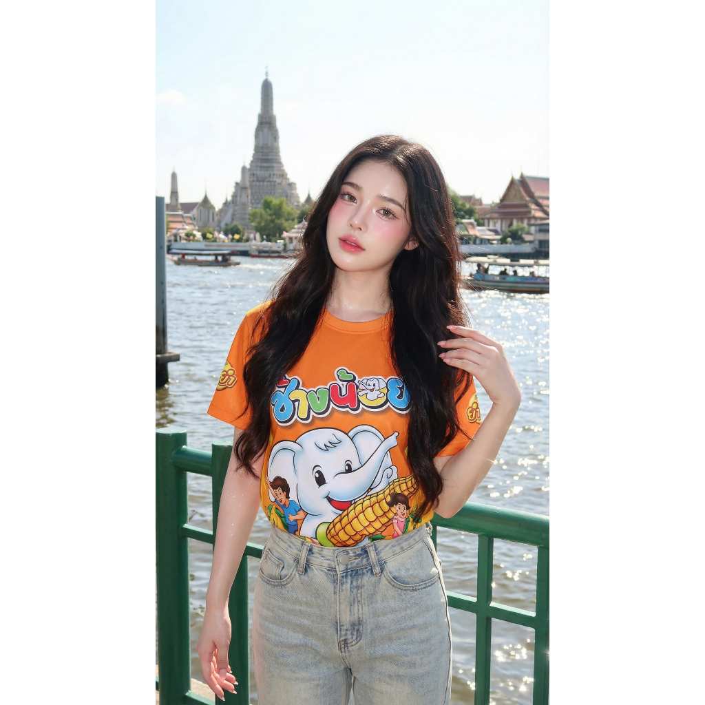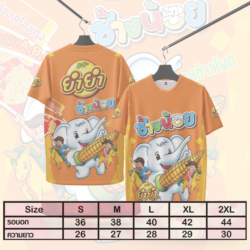 เสื้อคอกลมกีฬาลายยำยำช้างน้อยใส่สบายระบายอากาศผ้าไมโคร
