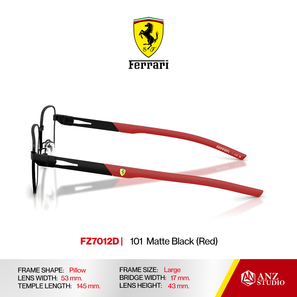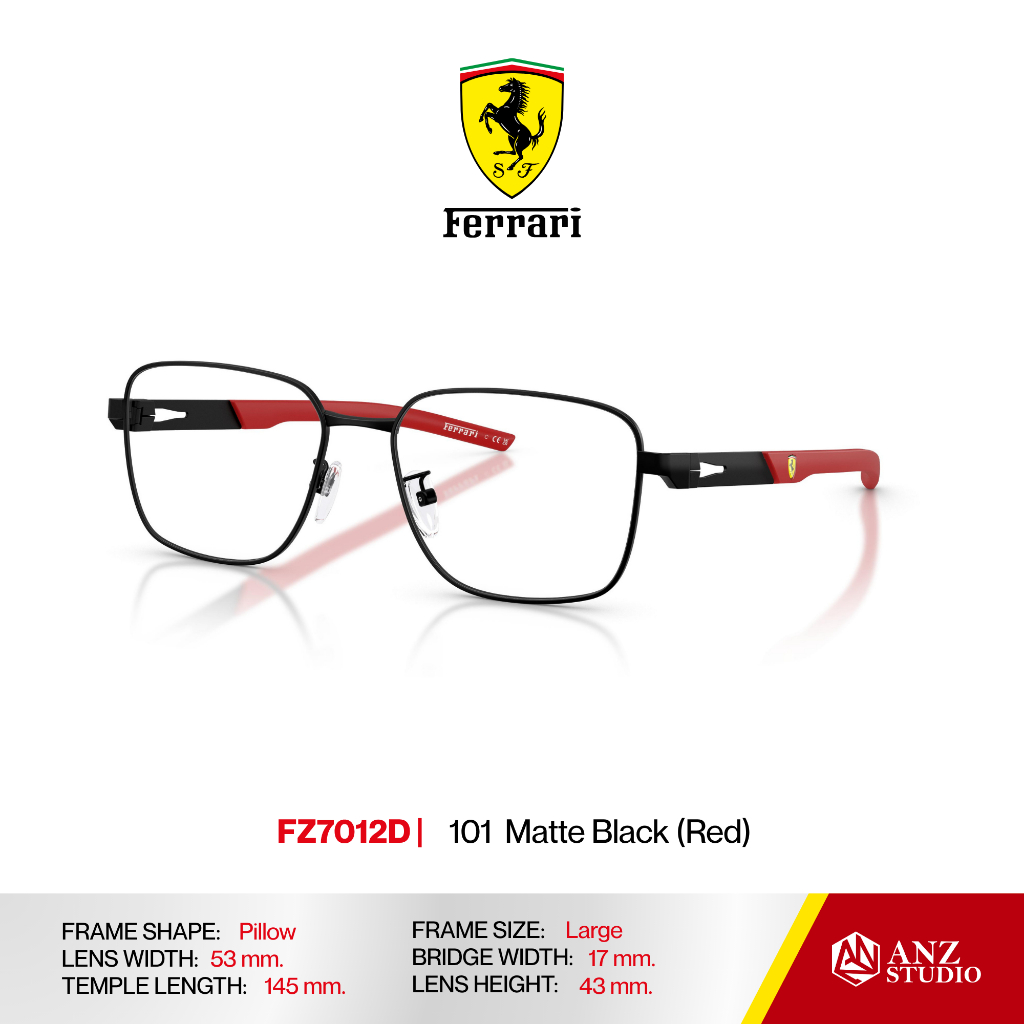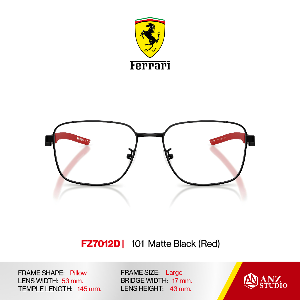 ANZ STUDIO | FERRARI FZ7012D กรอบแว่นตาทรง Pillow ดีไซน์ Racing โลหะน้ำหนักเบา บานพับ Screwless ของแท้รับประกัน 2 ปี