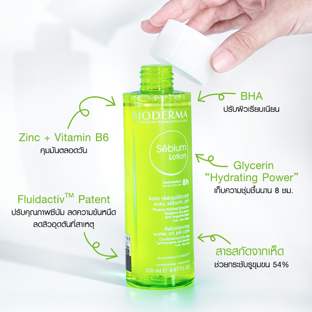 Bioderma Sebium Lotion 200 ml โทนเนอร์น้ำตบสำหรับผิวมัน ผิวผสม เป็นสิวง่าย