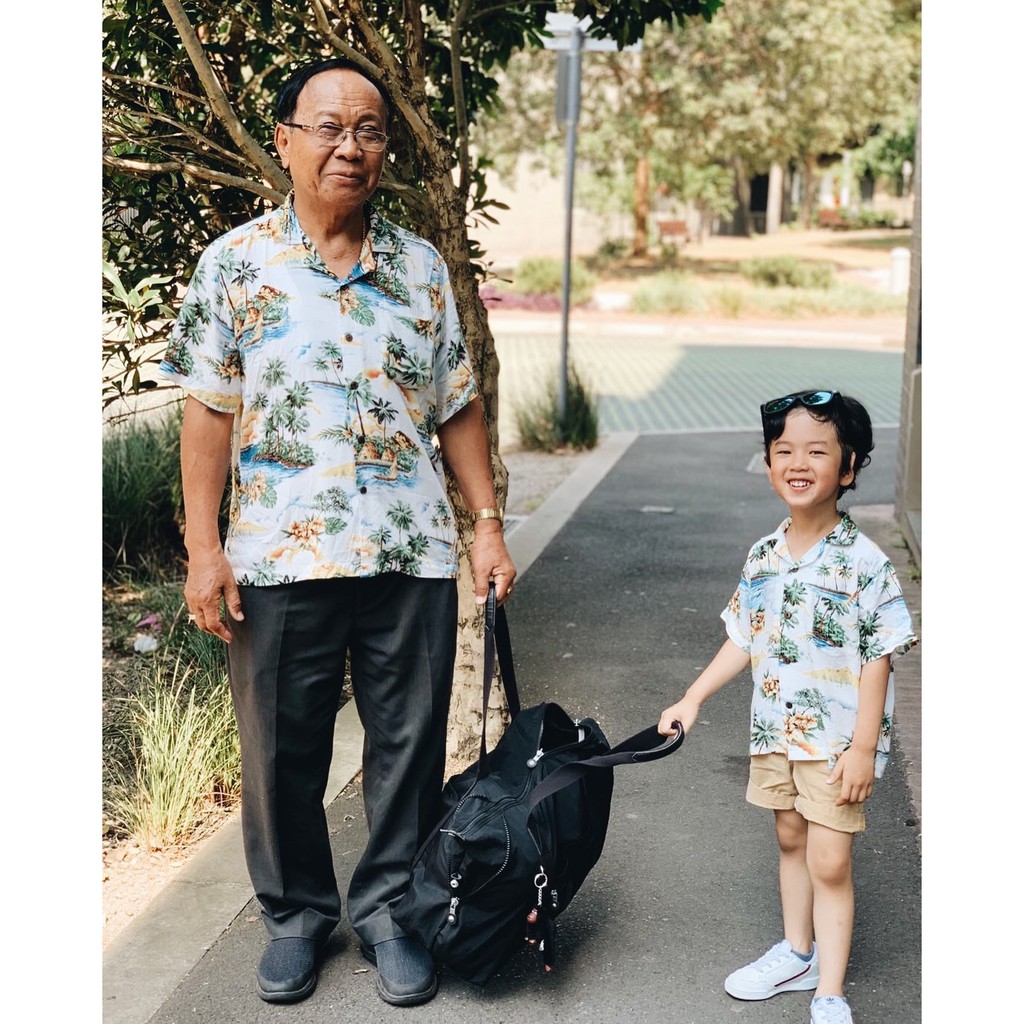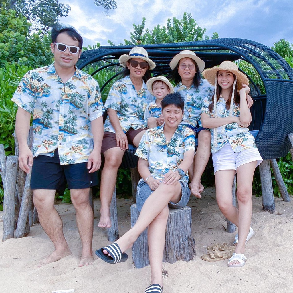 Roaming HR03 เสื้อฮาวาย ผ้าเรยอนญี่ปุ่น เสื้อครอบครัว เด็ก&ผู้ใหญ่ Hawaiian aloha Shirts [บลูฮาวาย]