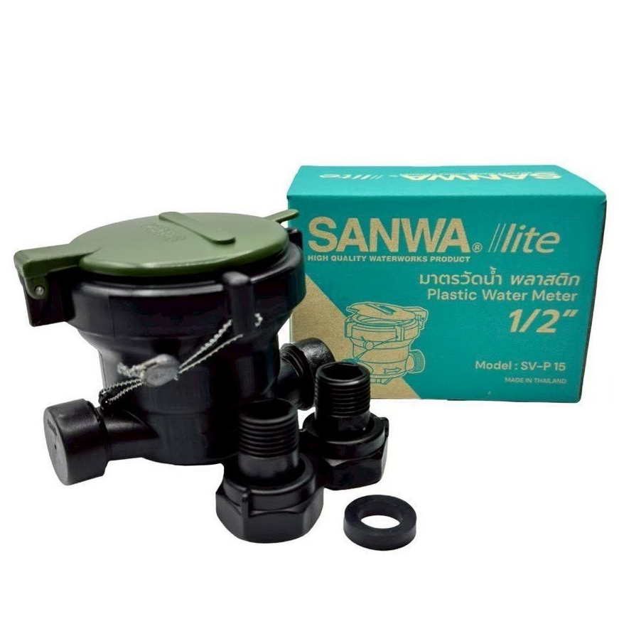 SANWA มิเตอร์น้ำพลาสติก 1/2" (4 หุน) LITE SV-P 15 R80 มาตรวัดน้ำ ซันวา ซันว่า Single-Jet Plastic Water Meter