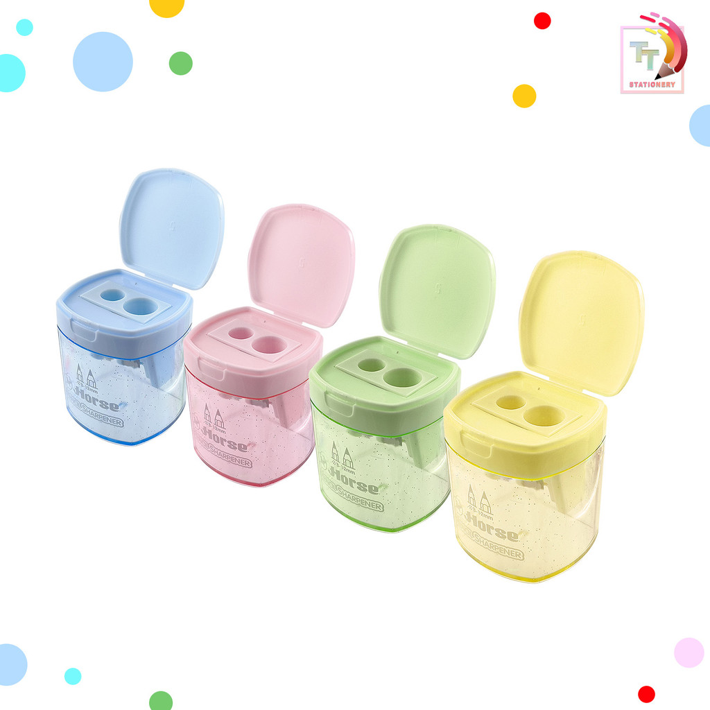 HORSE (ตราม้า) กบเหลาดินสอ กบเหลา 2 รู มีฝาปิด สีพาสเทล รุ่น H-860 ( 1 ชิ้น คละสี )