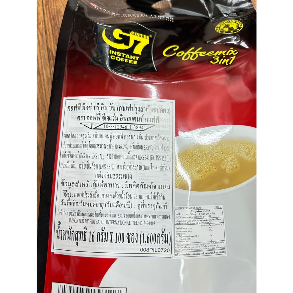 G7 3in1 instant coffee 1600g (100ซอง)