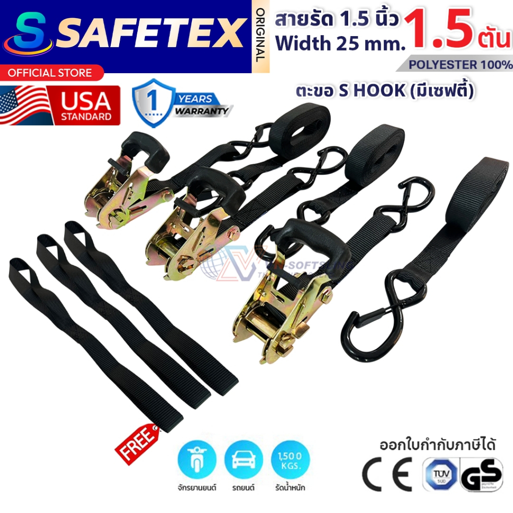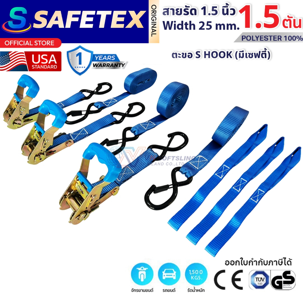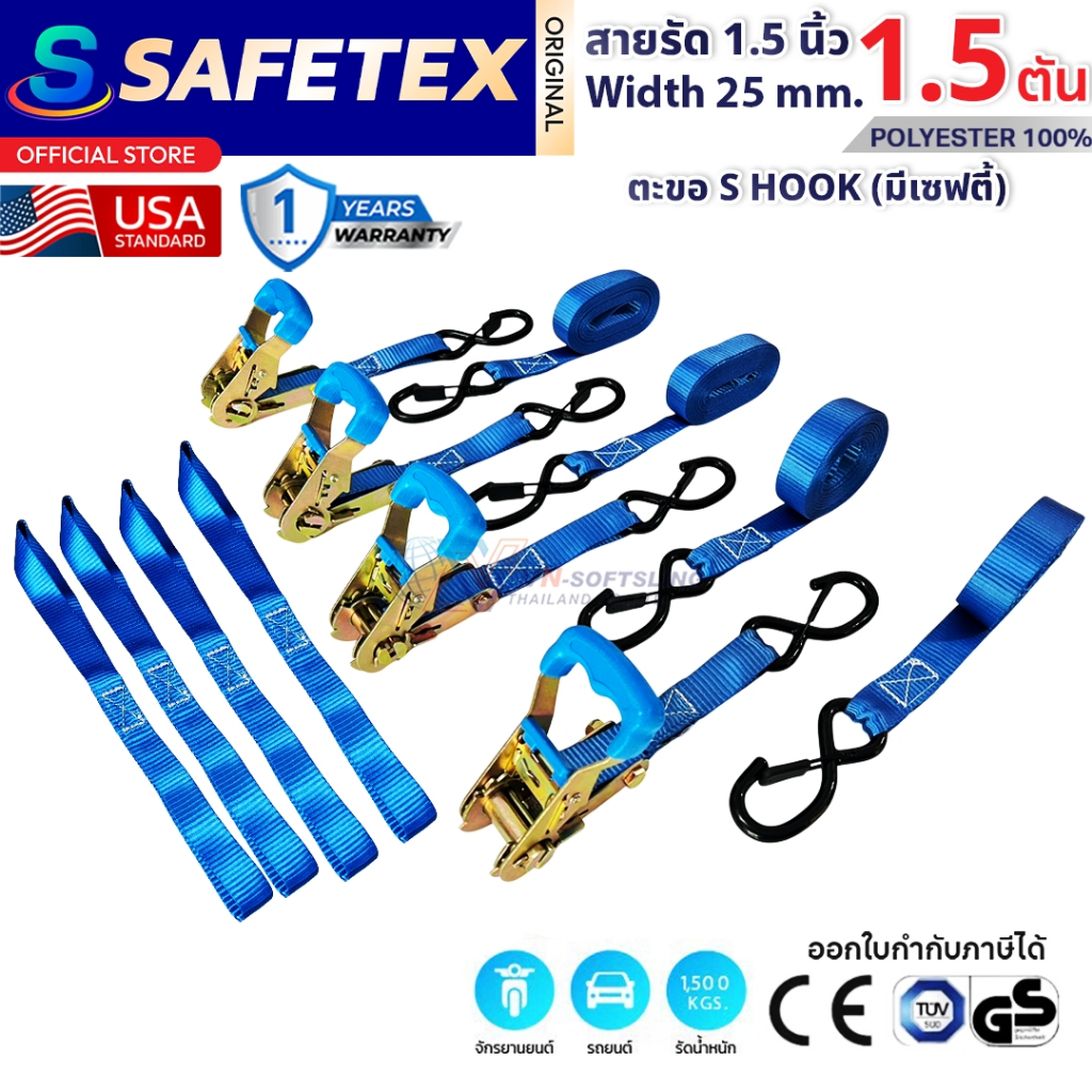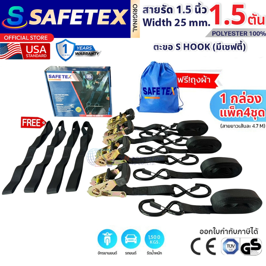 SET BOX แพ็ค 4 ชุด สายรัดก๊อกแก๊ก 1นิ้ว 1.5 ตัน ยาว 4.7 เมตร (รุ่นตะขอเอสเซฟตี้) สายรัดอเนกประสงค์