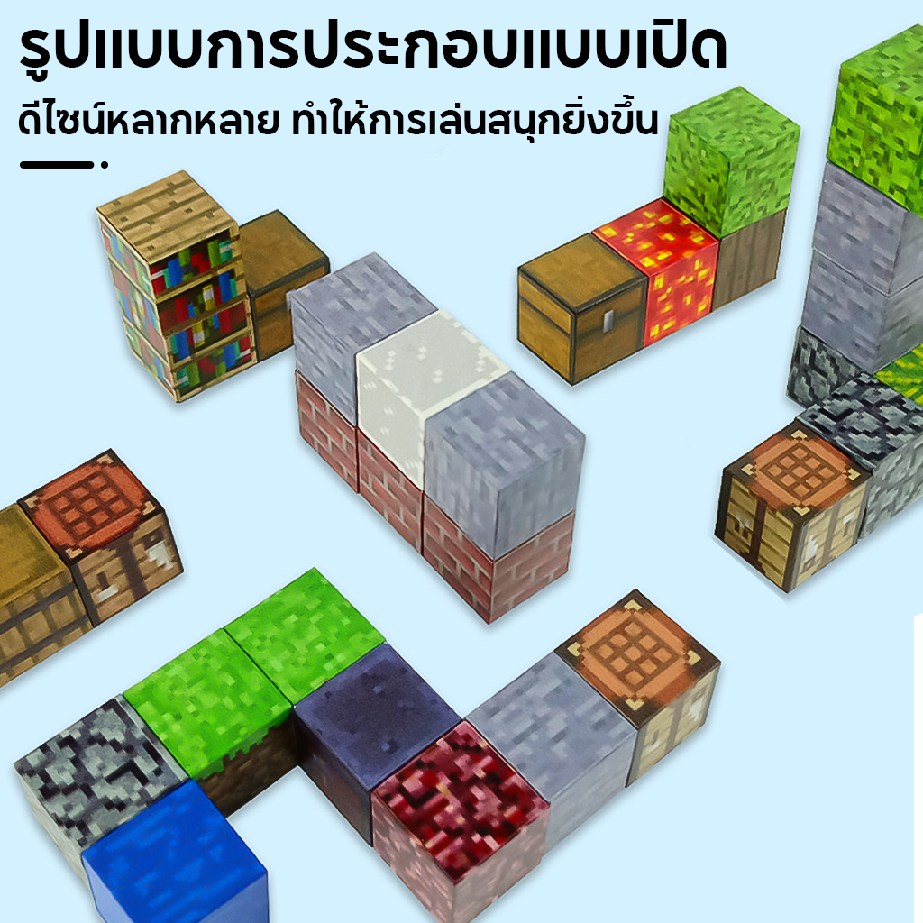 ตัวต่อมายคราฟ ของเล่นมายคราฟ แม่เหล็กสแควร์ บล็อกตัวต่อแม่เหล็ก ตัวต่อแม่เหล็กเด็ก Magnetic Cube
