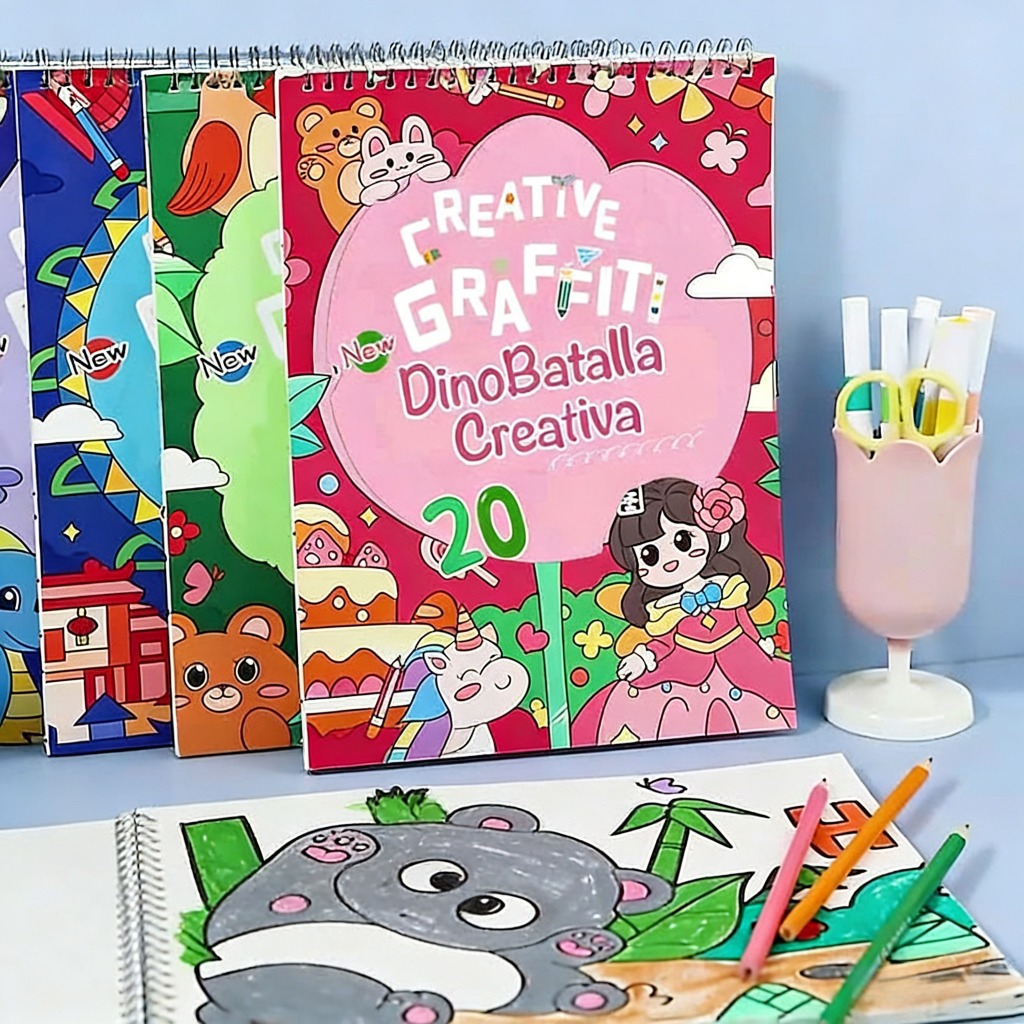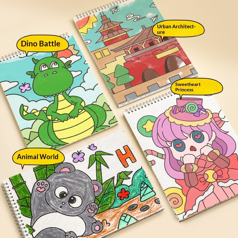 KiKi สมุดระบายสีเด็ก พร้อมสติ๊กเกอร์ ของขวัญเด็ก ของเล่นเสริมพัฒนาการ ลายสัตว์ เจ้าหญิง ไดโนเสาร์