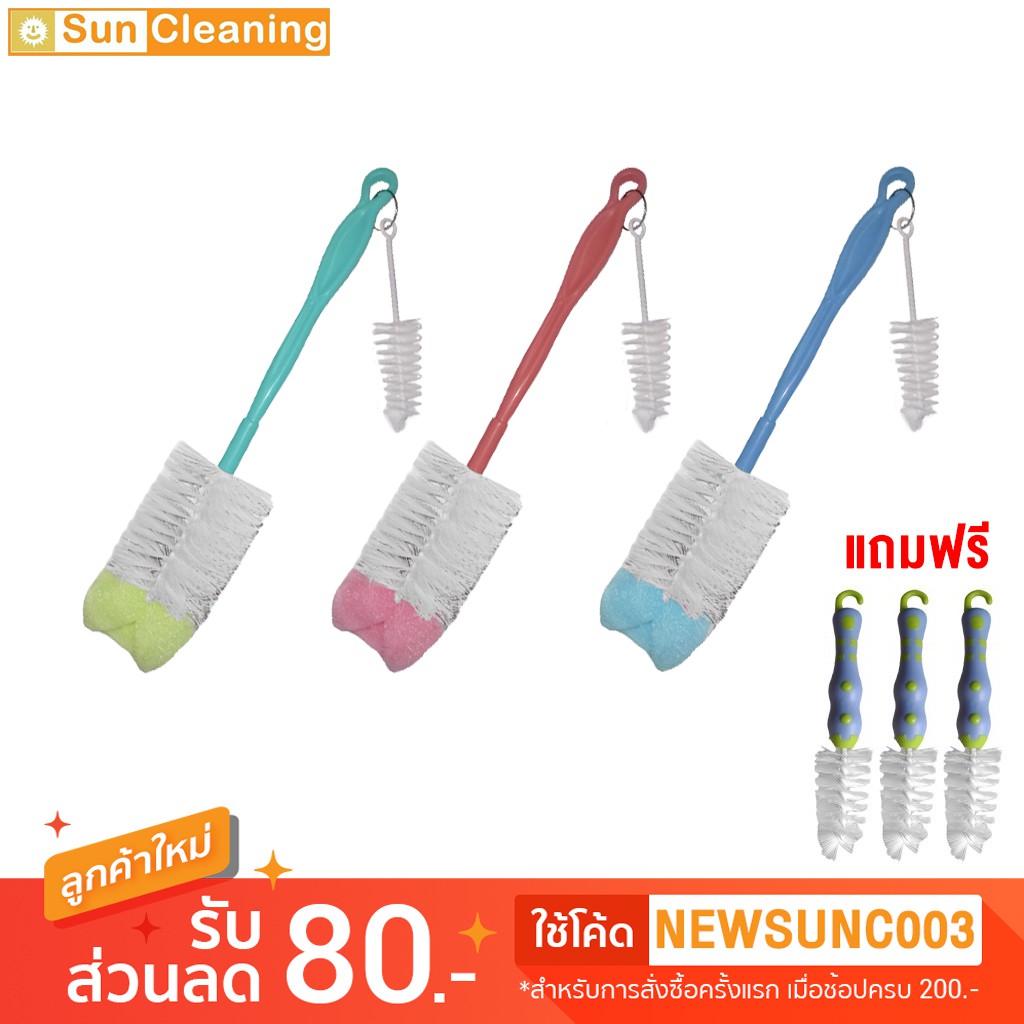 Sun Brand [ซื้อ 3 แถมฟรี 3] ชุดแปรงล้างขวดนมหัวฟองน้ำ แพ็ค 3 อัน แถมฟรีแปรงล้างจุกนม 3 อัน ราคาพิเศษ