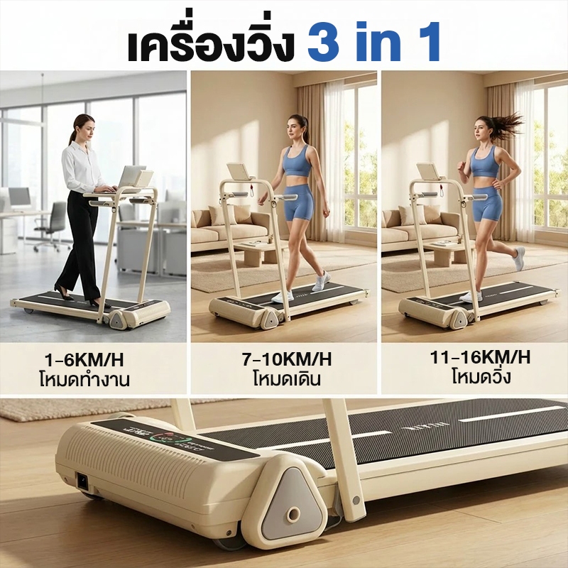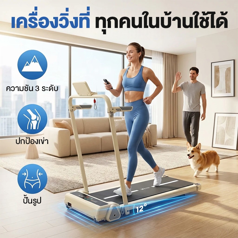 ลู่วิ่ง ลู่วิ่งไฟฟ้า Mini Treadmill B50 Treadmill เครื่องวิ่งไม่ต้องติดตั้ง ปรับความชัน 3 ระดับ รับประกัน 10 ปี