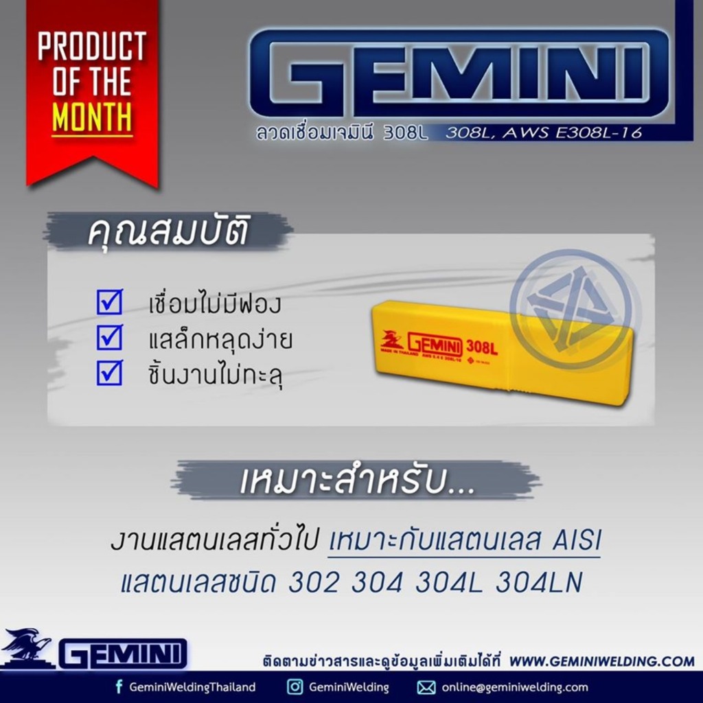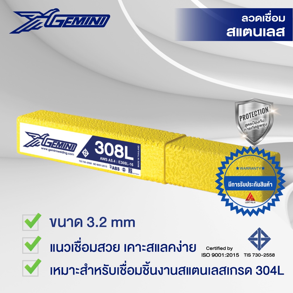GEMINI ลวดเชื่อมแตนเลส 308L 3.2 x 350 มม. 1 หลอด 1 กิโลกรัม