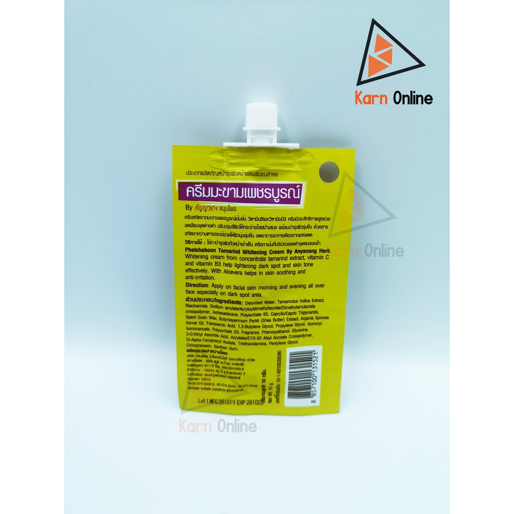 อัญญานาง ครีมมะขามเพชรบูรณ์ 1 ซอง (10 กรัม) * ลดฝ้า รอยหมองคล้ำ*