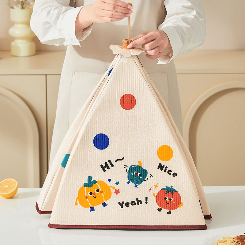 มุ้งครอบอาหาร ฝาชีครอบอาหาร ลวดลายการ์ตูน กันแมลงและฝุ่น แบบพับเก็บได้ ระบายอากาศดี สำหรับครอบจาน