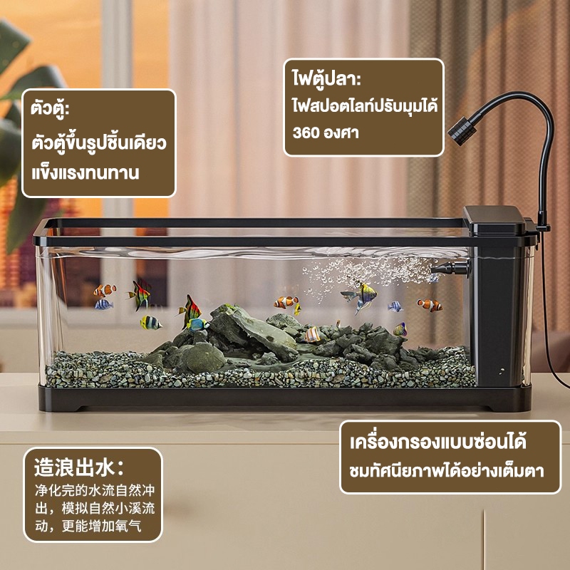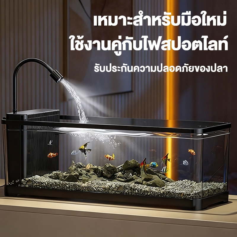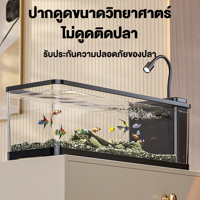 ตู้ปลา ตู้ปลาตั้งโต๊ะ ตู้ปลาขนาดเล็ก ตู้ปลา พลาสติกใส พร้อมไฟและปั๊มน้ำ การออกแบบที่มีฝาปิด