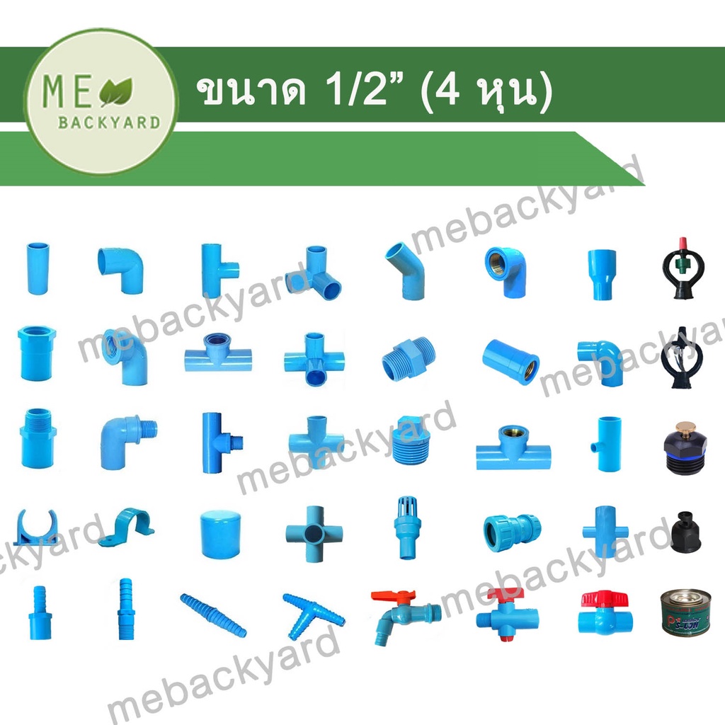ข้อต่อ PVC พีวีซี 1/2" (4 หุน) : ต่อตรง ข้องอ สามทาง สามทางมุมฉาก สี่ทางมุมฉาก ข้อต่อเกลียว ฝาครอบ
