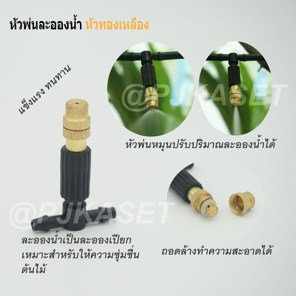 หัวพ่นหมอก หัวพ่นละอองน้ำ ทองเหลือง 10-20 หัว พร้อมสายไมโคร10 /15 /20 เมตร ต่อก๊อกน้ำทั่วไปและก๊อกสนามได้