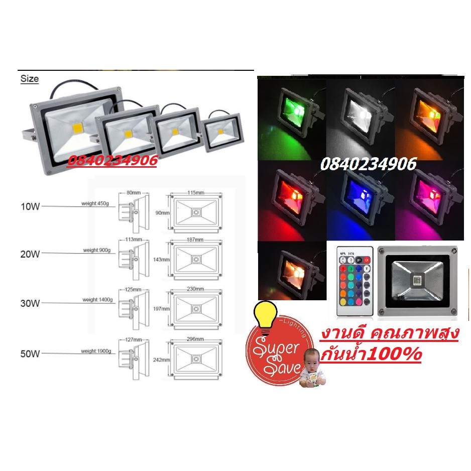 สปอร์ตไลท์ RGB เปลี่ยนสีได้ 10w 20w 30w 50w เปลี่ยนสลับสี ฟรีรีโมท ในชุด กันน้ำ ทนมาน คุณภาพดี ลดราคา