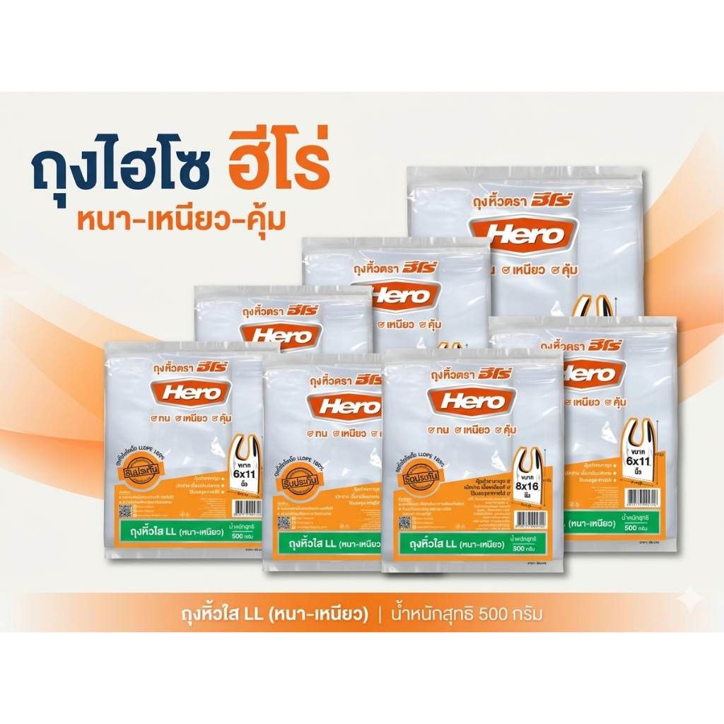 [ยกกระสอบ] ถุงฮีโร่ LL ถุงไฮโซ ใส เหนียว ทน รับน้ำหนักได้ดี น้ำหนัก 500กรัมx60ห่อ= 30กิโล ยกกระสอบ
