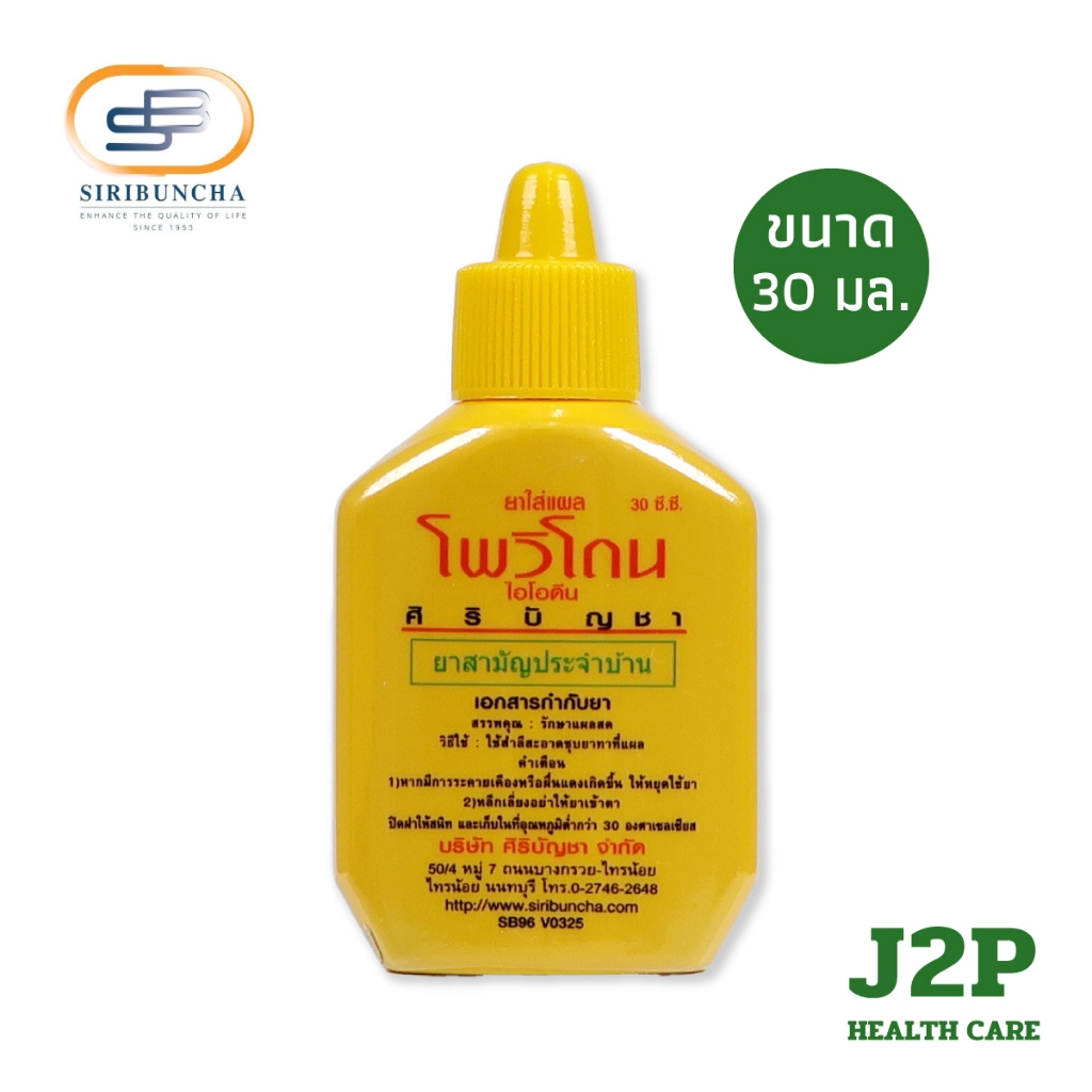 Puridine โพวิโดน-ไอโอดีน ศิริบัญชา ยาใส่แผล 30ml. (ยกกล่อง 12 ขวด)