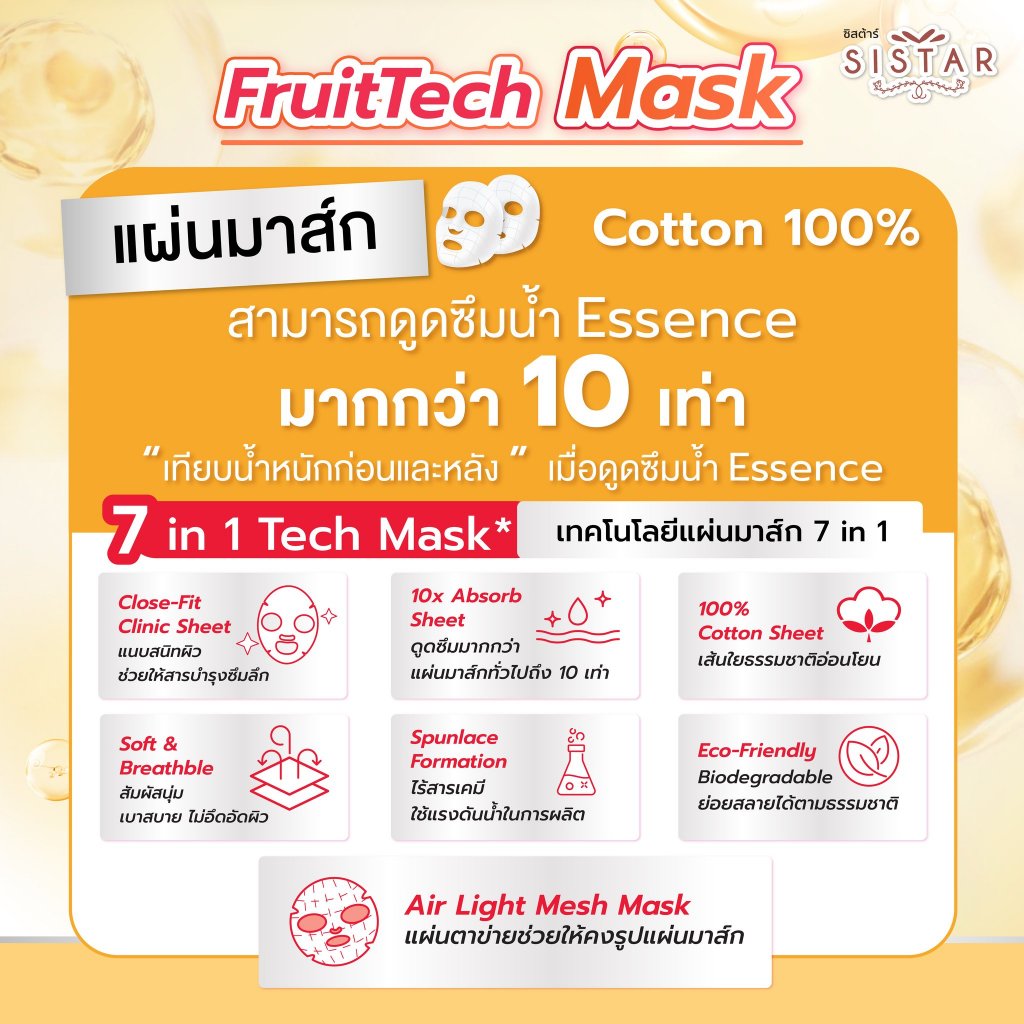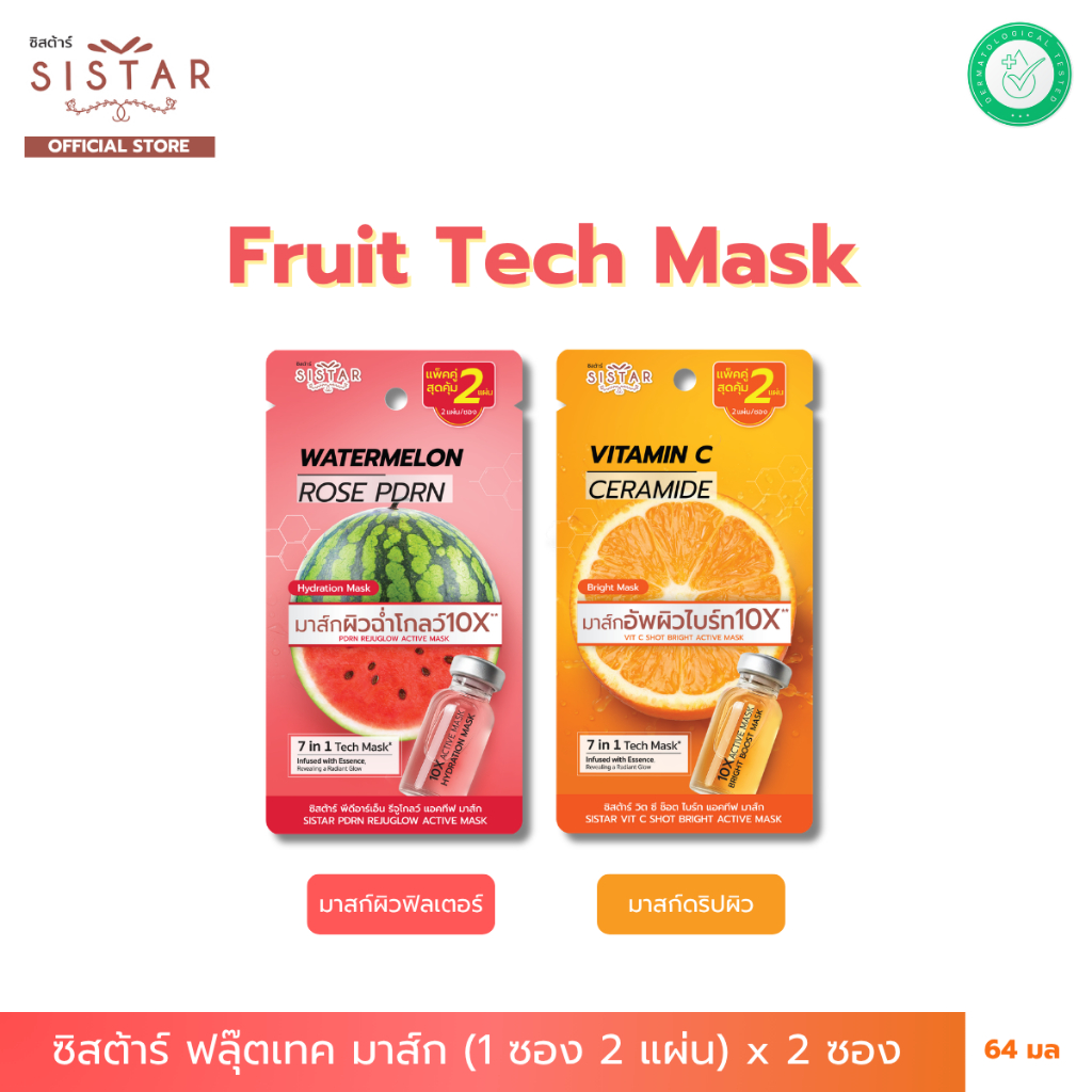 Sistar Official ใหม่!! ซิสต้าร์ Fruit Tech Mask มาส์กผิวโกลว์ บล็อกผิวแห้ง x 2 ซอง