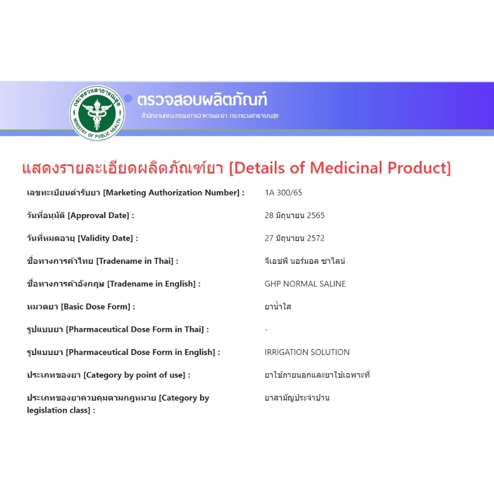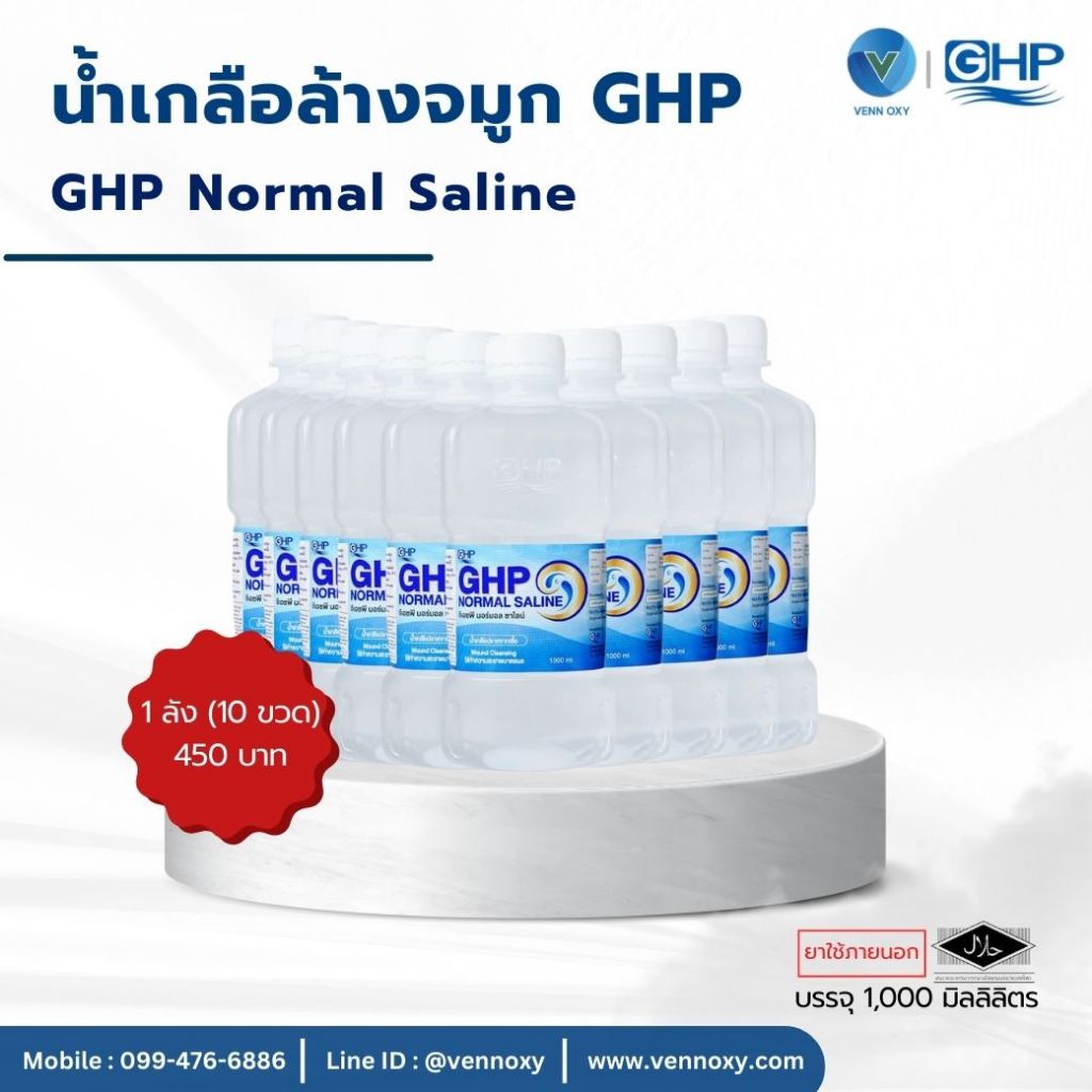 น้ำเกลือ GHP Normal Saline ขวดดัมเบล ล้างแผล ล้างจมูก ปลอดเชื้อ ขนาด 1,000 ml. (ยกลัง 10 ขวด)