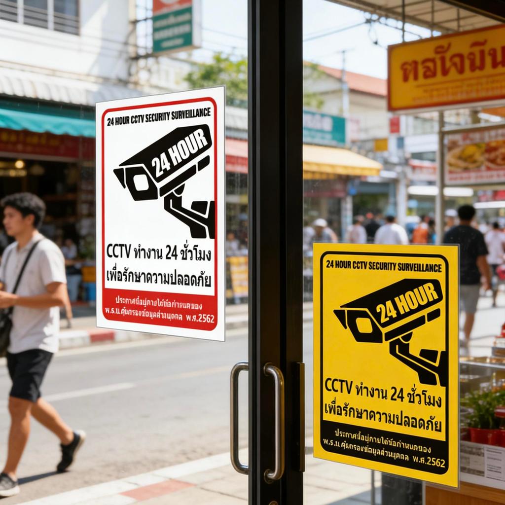 สติ๊กเกอร์กล้องวงจรปิด สติ๊กเกอร์กล้อง ป้ายกล้องวงจรปิด24ชม กันน้ำ กันแดด สติ๊กเกอร์ กล้องวงจรปิด CCTV 24H (Sticker) ทนแ