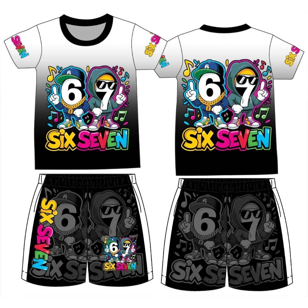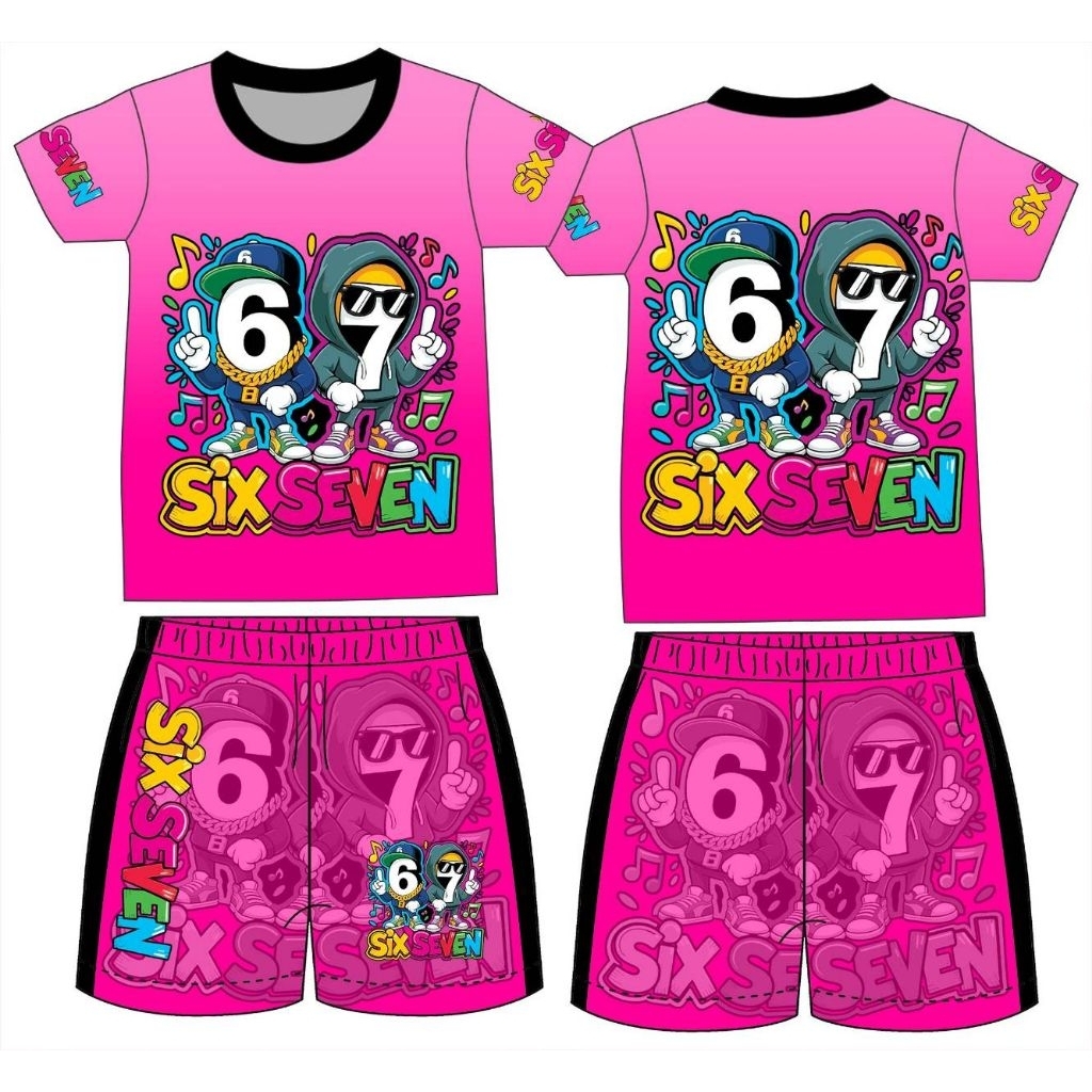 มาแรง!!ชุดเซ็ทเด็ก(ซิกเซเว่น) แขนสั้นขาสั้น พิมพ์ลายทั้งตัว2-12ปี งานไทย