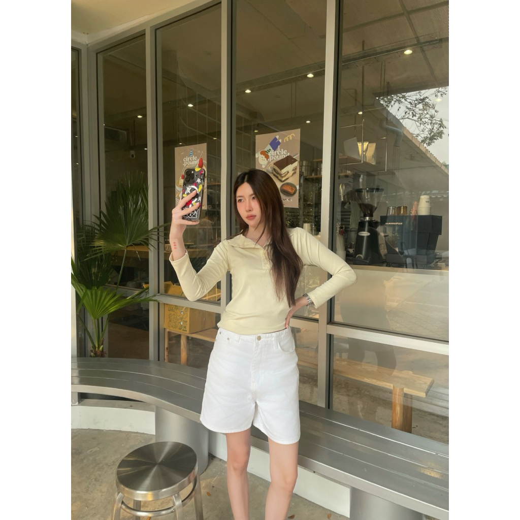Proudly - rookie short กางเกงยีนส์ขาสั้นสองส่วน เอวสูงขากระบอก(ป้ายproudlyพร้อมส่ง)