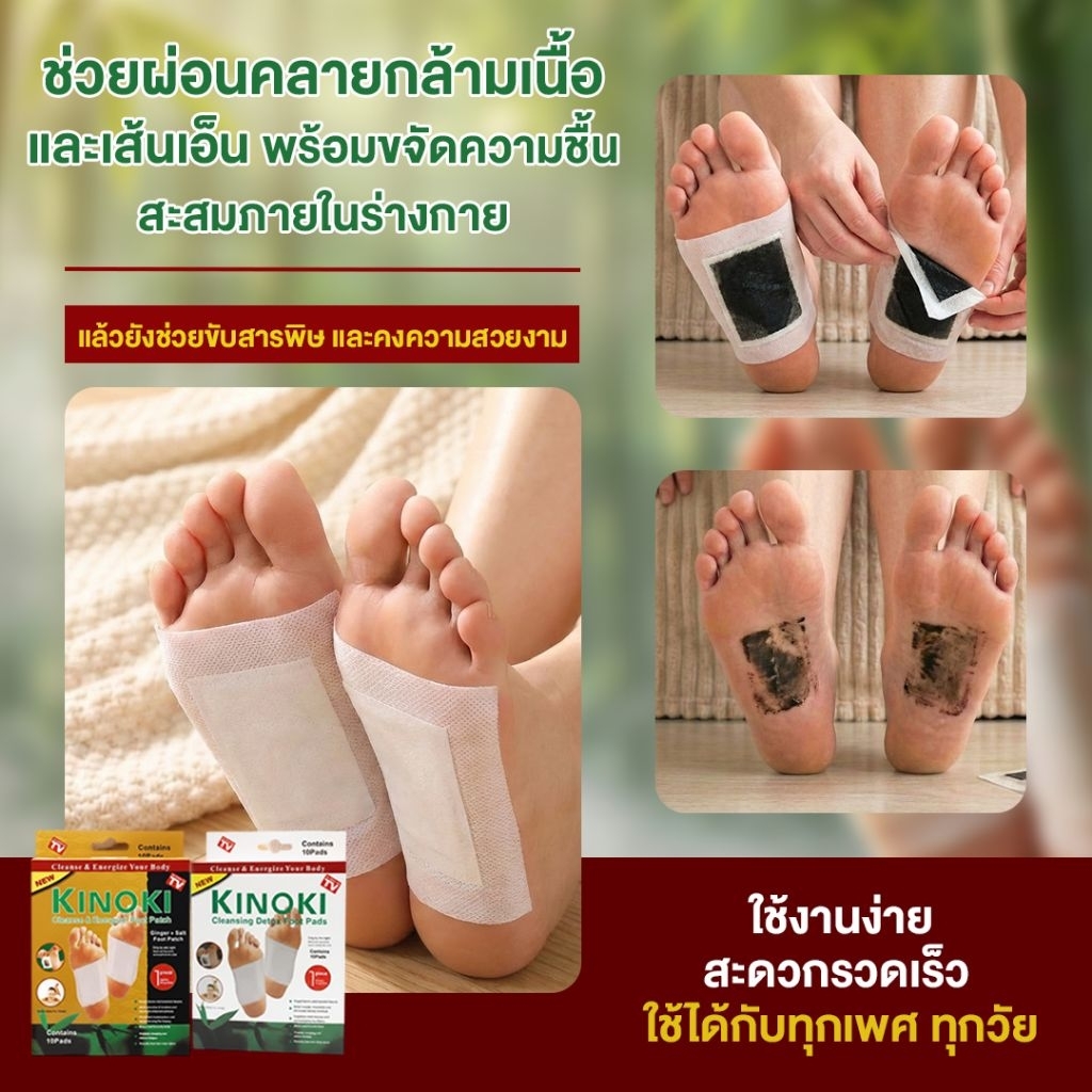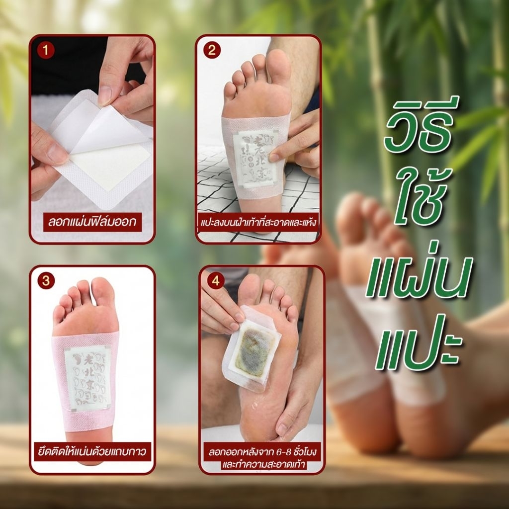 แผ่นแปะเท้าสมุนไพร 1 กล่อง 5 คู่ 10 แผ่น ขจัดสารพิษ ดูแลผิวพรรณ ช่วยผ่อนคลายกล้ามเนื้อและเส้นเอ็น