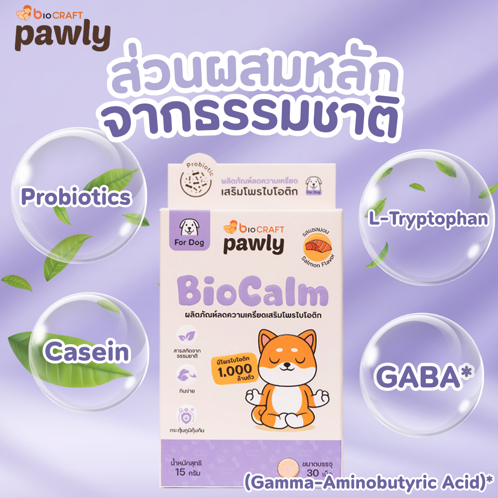 Pawly BioCalm (สำหรับสุนัข)ช่วยผ่อนคลาย ลดความกังวล อารมณ์สมดุล ปรับตัวง่ายขึ้น - [1กล่อง - 30เม็ด]