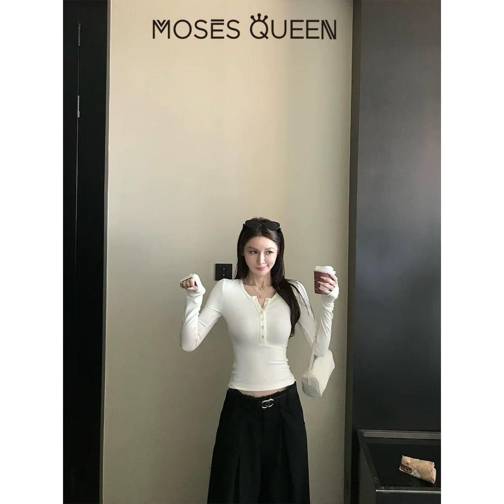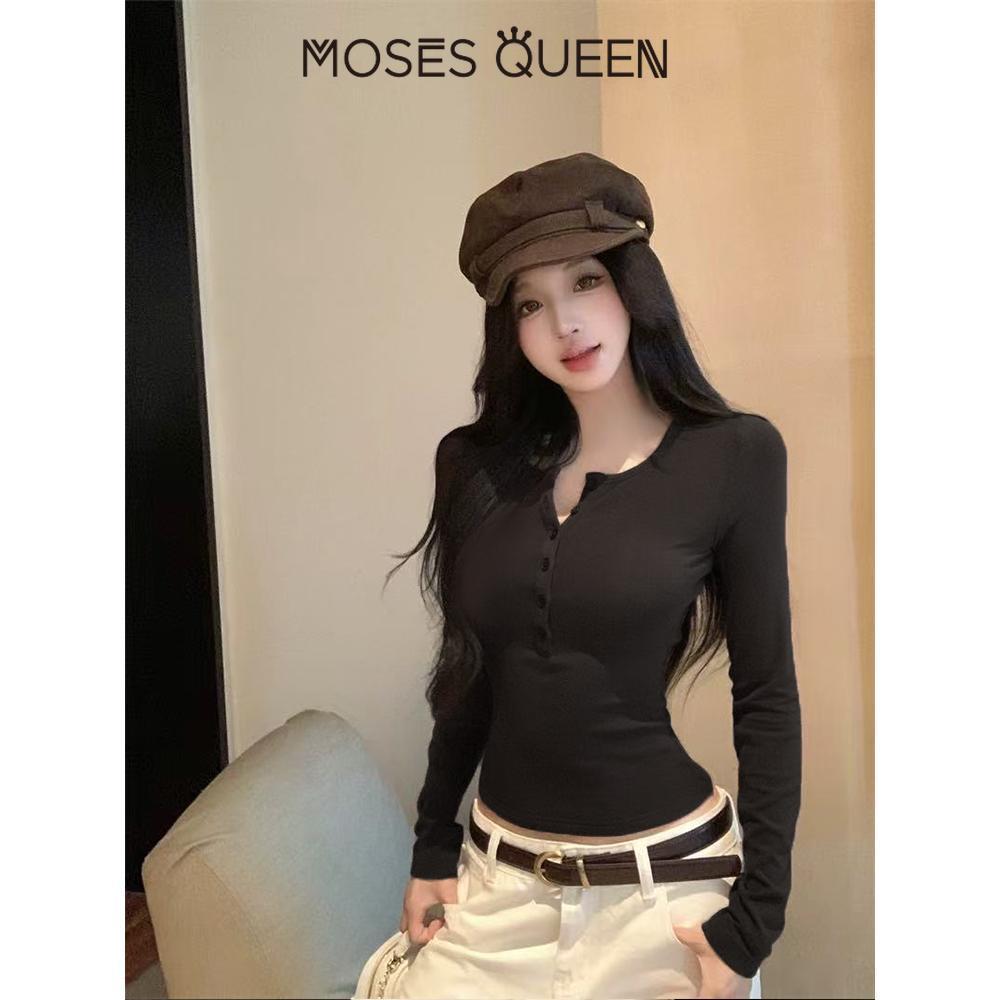 MOSESQUEEN เสื้อสเวตเตอร์ฮันนี่คอลเลอร์ สไตล์คล่องตัว สำหรับผู้หญิง เหมาะสำหรับสวมใส่ประจำวันและลมเย็น #63352