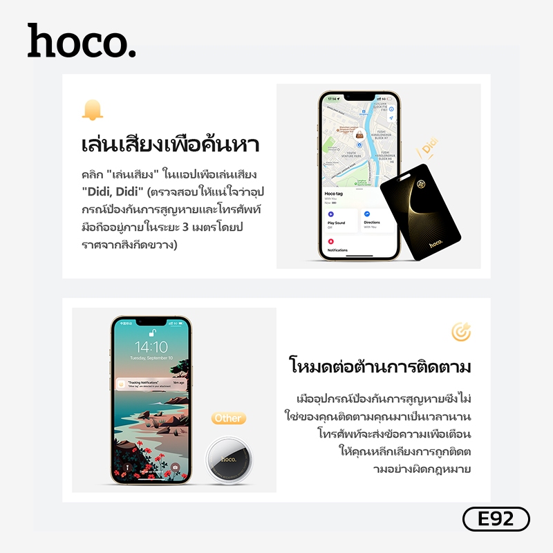 HOCO E92 การ์ด GPS กันหาย ใช้กับ iOS Find My การ์ดกันหาย กันน้ำ IP68 ติดตามทั่วโลก ใส่กระเป๋าสตางค์