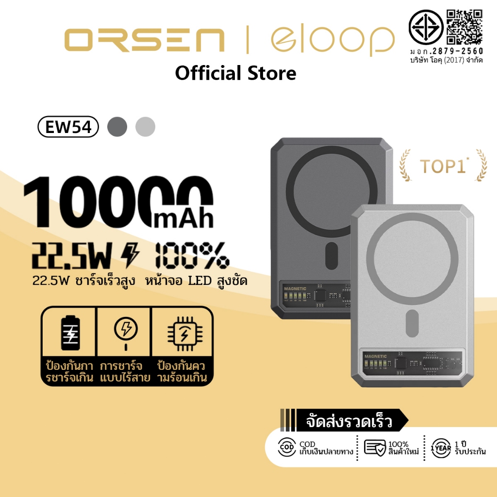 Orsen by Eloop EW31 EW54 EW55 EW71 รุ่นใหม่ แบตสำรอง 20000mAh ชาร์จไร้สาย แม่เหล็ก PowerBank MagCharge Magnetic