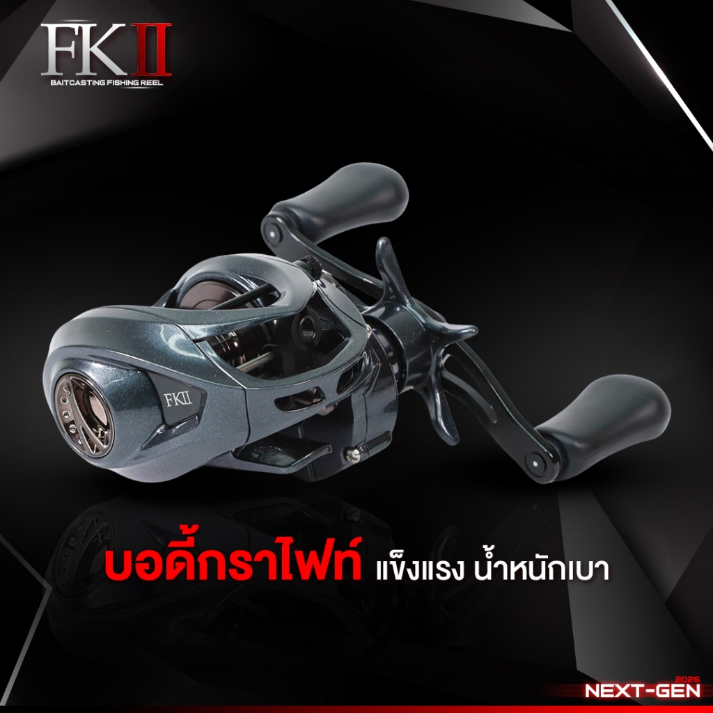 รอกหยดน้ำ FISHKING FK II ใหม่ล่าสุด 2026 อัพเกรดลูกปืนเป็น NMB พร้อมผ้าเบรกคาร์บอน HT เบรกแน่นเนียน น้ำหนัก 158 กรัม