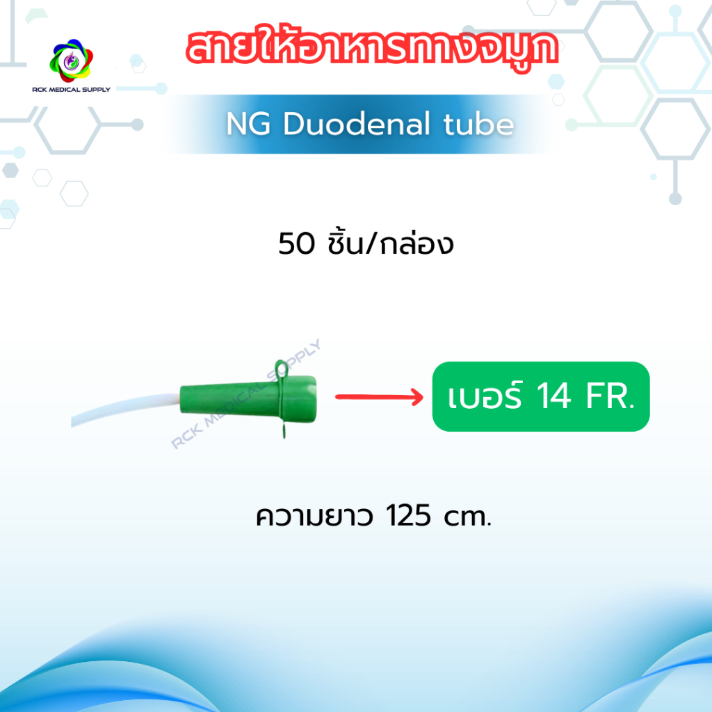 สายให้อาหารทางจมูกผู้ใหญ่ NG Duodenal Tube 125 ซม. เบอร์ 12/14/16 | Medical Grade PVC | ขายปลีก–ยกแพ็ค (50 ชิ้น)