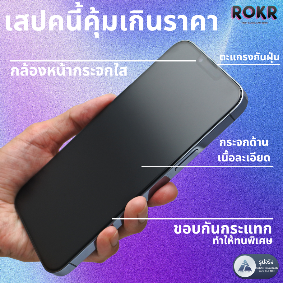 ROKR ฟิล์มกระจกด้าน ยี่ห้อ Shield Tech สำหรับ i17 i16 i15 i14 i13 i12 i11 iX