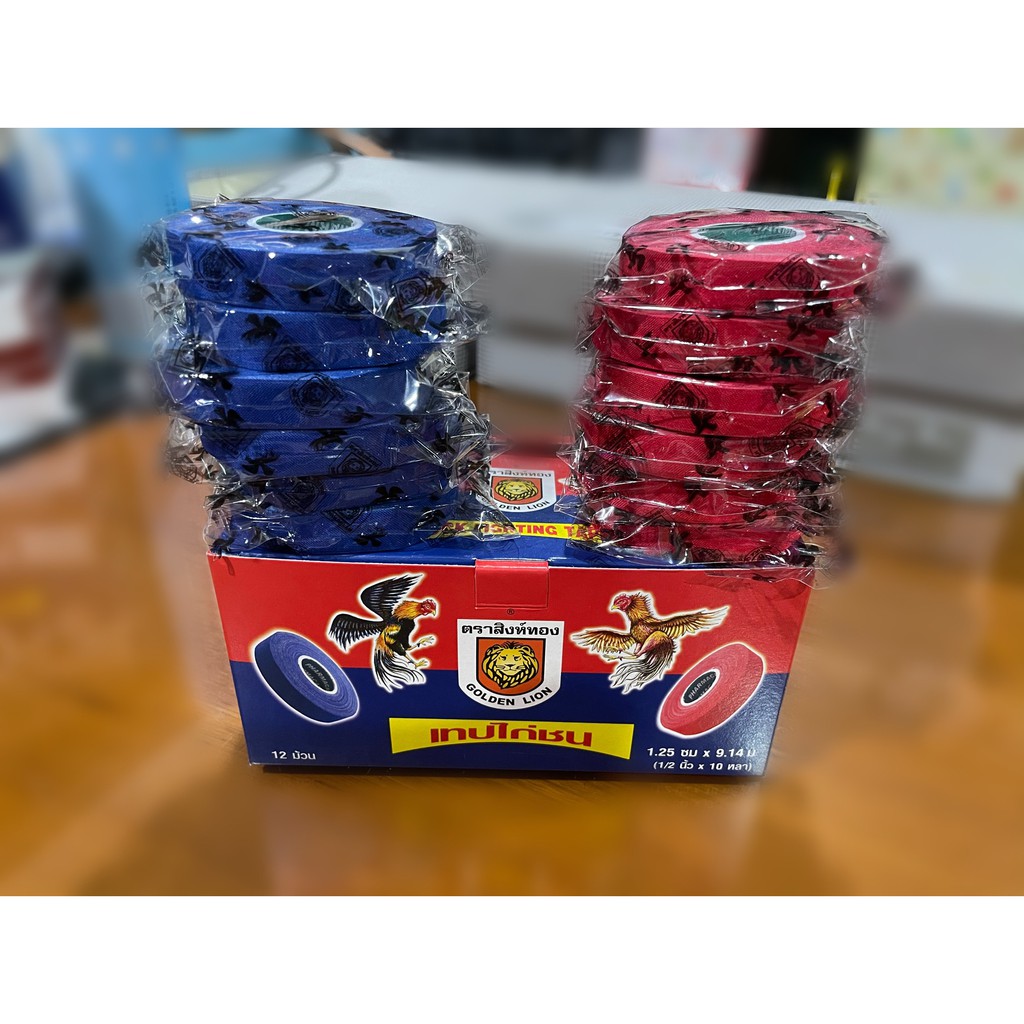 เทปไก่ชน(เทปสี แดง-น้ำเงิน,น้ำตาล ขาว) เทปพันตอไก่ เทปพันเดือยขนาด 1/2นิ้ว 10หลา 12ม้วน