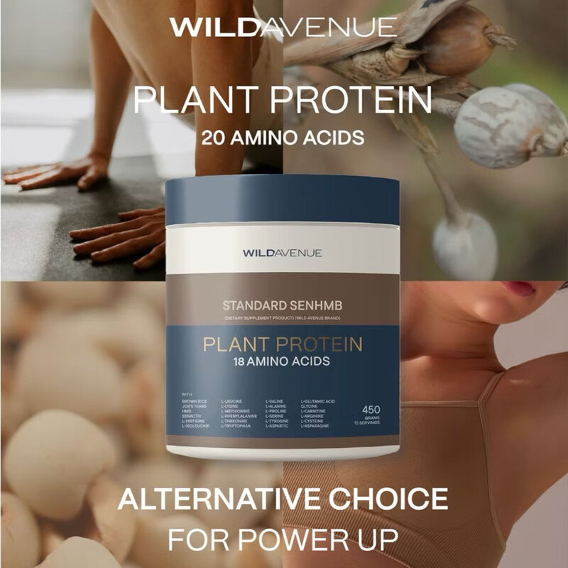 Wild Avenue Standard Senhmb Plant Protein 18 Amino Acids 450g ผลิตภัณฑ์เสริมอาหารโปรตีนพืช รสคาเคา ไวลด์ อเวนิว.