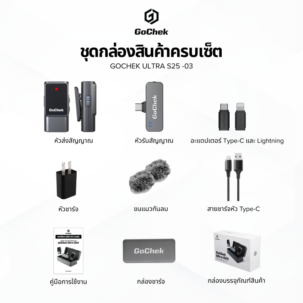 GoChek Ultra S25 ไมโครโฟนไร้สายตัดเสียงรบกวนด้วย AI ปรับสมดุลเสียงคุณภาพเสียงมาตรฐานสตูดิโอไมค์ใช้ได้กับสมาร์ตโฟนทุกรุ่น