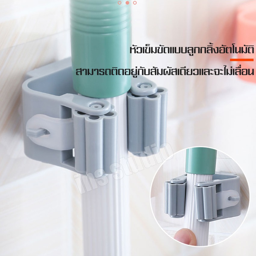 RYBACK ที่แขวนไม้กวาด ที่เก็บไม้กวาด ตัวหนีบติดผนัง หนีบอุปกรณ์ครัว ที่แขวนของติดผนัง ใช้หนีบเก็บสิ่งของมีด้าม