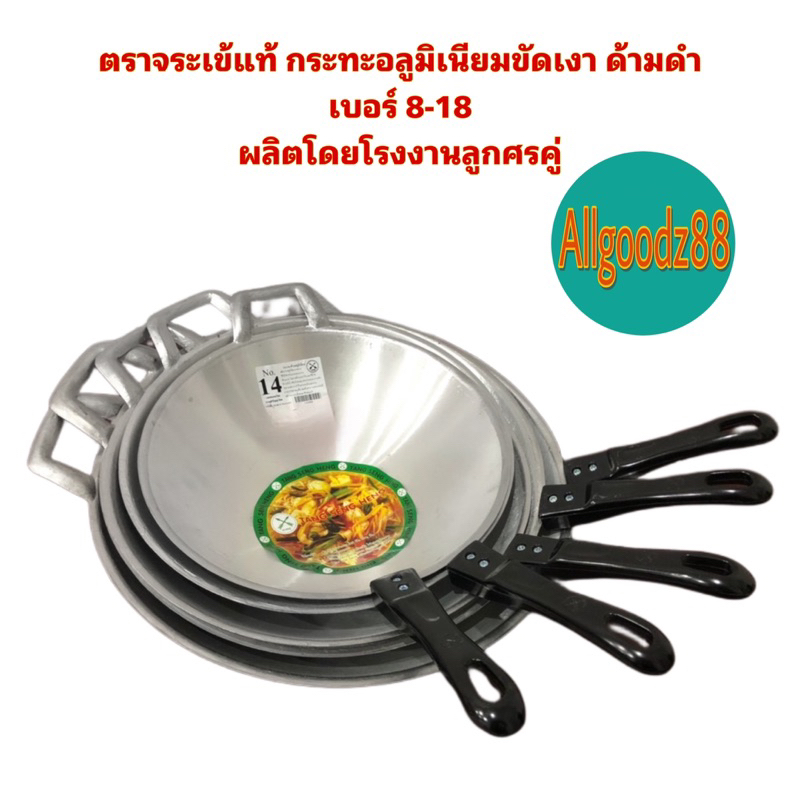 ตราจระเข้ กระทะอลูมิเนียมขัดเงา ด้ามดำ เบอร์ 8-18 ผลิตโดยโรงงานลูกศรคู่*สามารถออกใบกำกับภาษีได้ค่ะ
