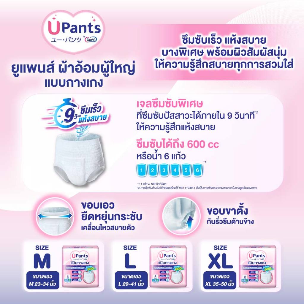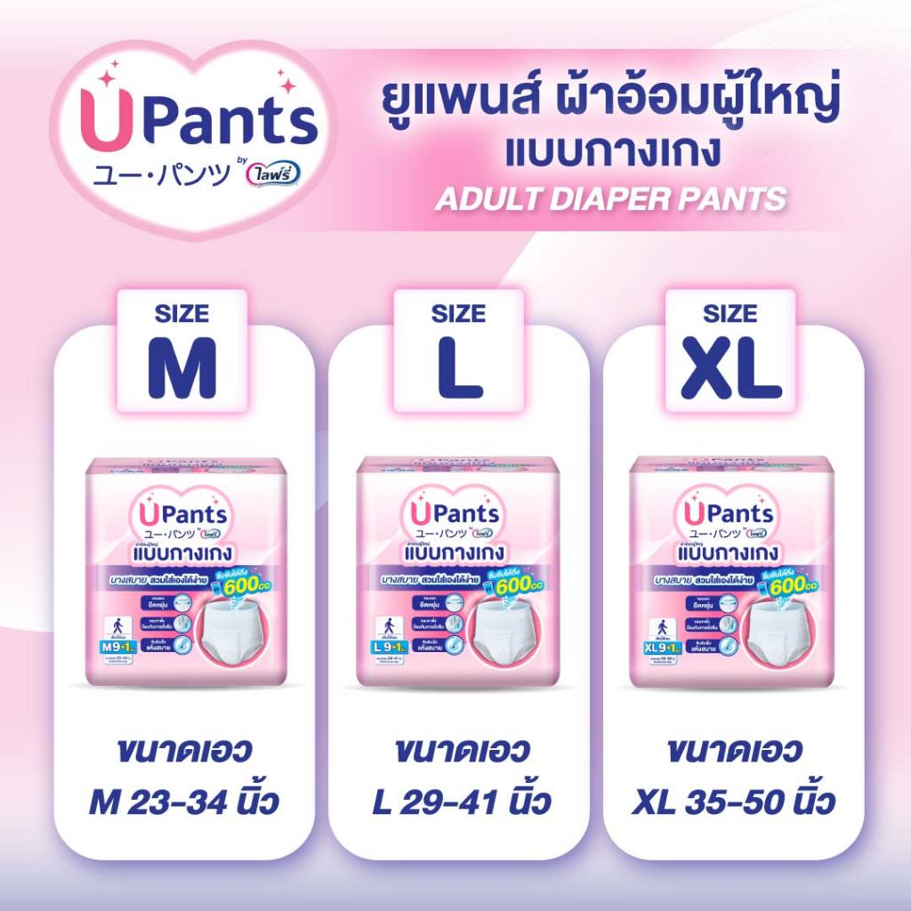 (เลือกไซส์ด้านใน) ยกลัง Upants ยูแพนส์ ผ้าอ้อมผู้ใหญ่แบบกางเกง ขนาด M-XL 9+1 ชิ้น รวม 80 ชิ้น