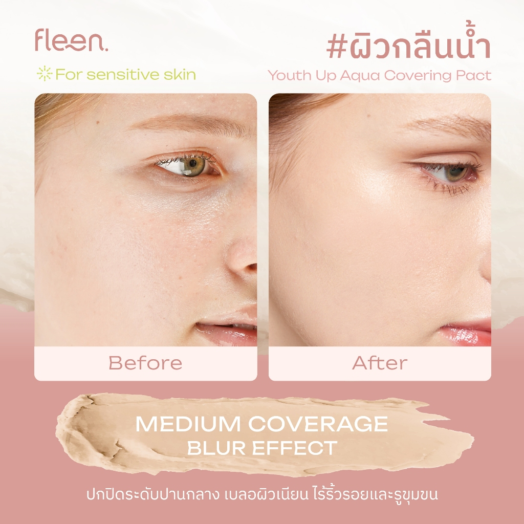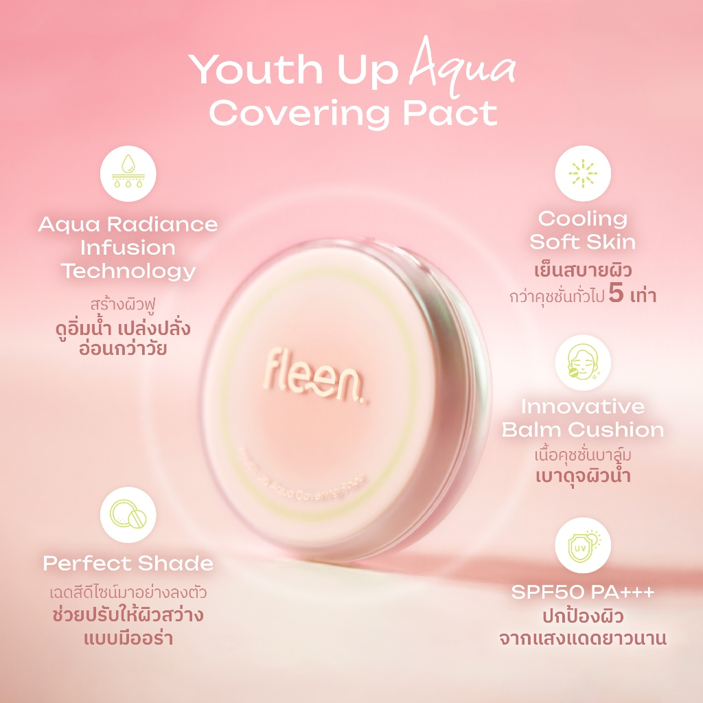 Fleen Beauty Youth Up Aqua Covering Pact Cushion SPF50 PA+++ #คุชชั่นน้ำแร่