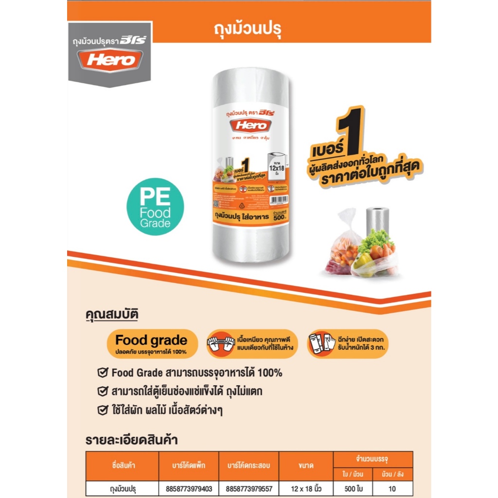 (ยกกระสอบ) ถุงม้วนปรุ 12x18นิ้ว 500ใบ ตรา HERO | LAILA