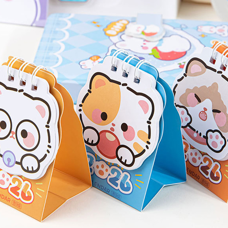 ปฏิทินตั้งโต๊ะรูปแมว ปี 2026 ของตกแต่งเดสก์ท็อปขนาดเล็ก ปฏิทินเช็คอินรูปลูกแมวสุดน่ารัก