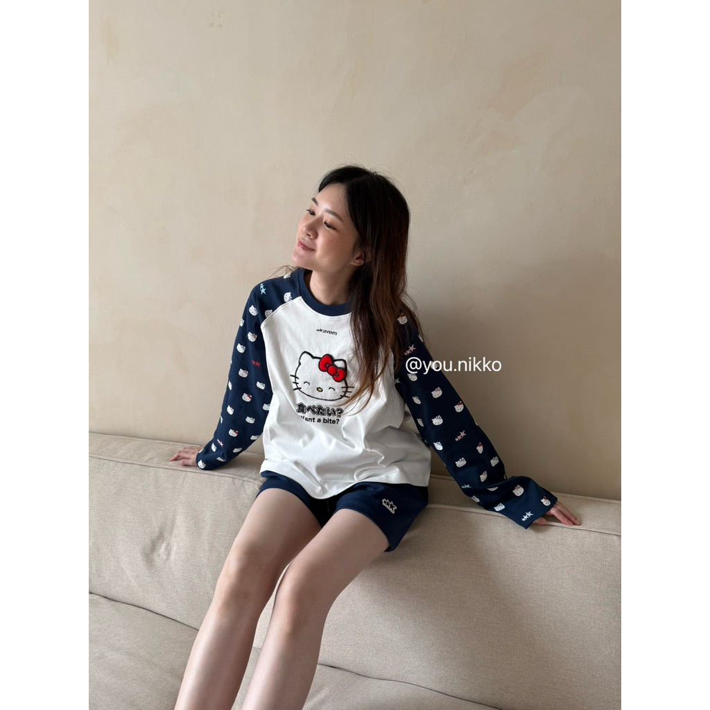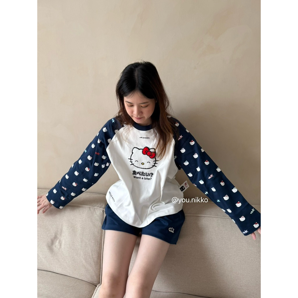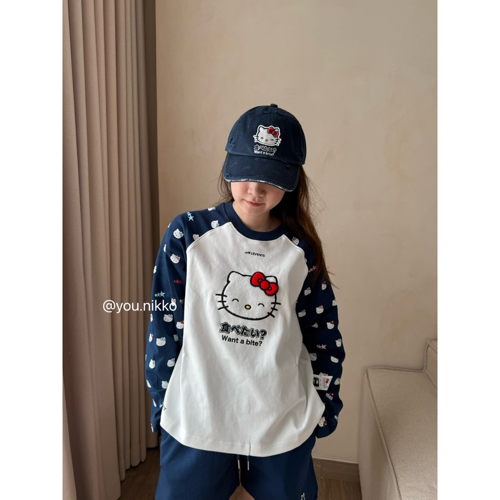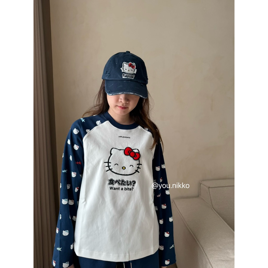 (พร้อมส่ง_ส่งด่วนได้) NEW Levents X Kitty เสื้อแขนยาว Joy Icon Heavyweight Raglan navy